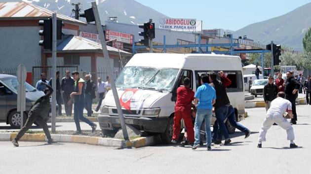 Bu sırada bölgede bulunan bir grup gösterici tarafından dövülen ve minibüsü ateşe verilerek yakılan Taşkesen, Bölge Eğitim ve Araştırma Hastanesinde yoğun bakım altına alındı.