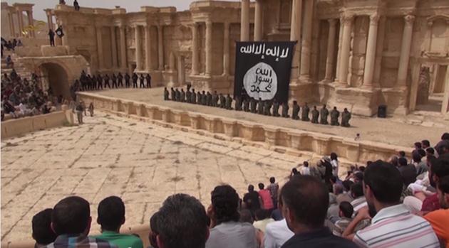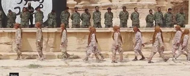 IŞİD Palmira-infazYayınlanan videoda, Suriye askerlerinin cezaevinden alınarak 1800 yıllık antik tiyatroya elleri bağlı şekilde getirildiği ve çoğu çocuk yaştaki infazcılar tarafından tek kurşunla öldürüldüğü görülüyor.