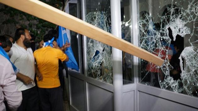 Protestocular daha sonra taş ve sopalarla konsolosluk binasının camlarını kırdı.