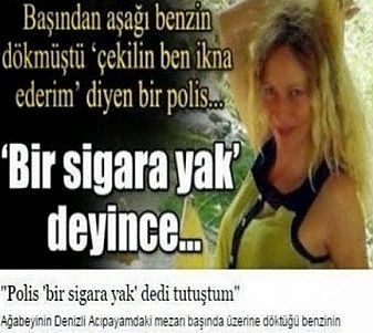 14. Üzerine benzin döken kadına sigara ikram eden polisler