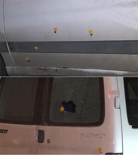 Yapılan incelemede otomobile 17 adet tabanca mermisi isabet ettiği öğrenildi.